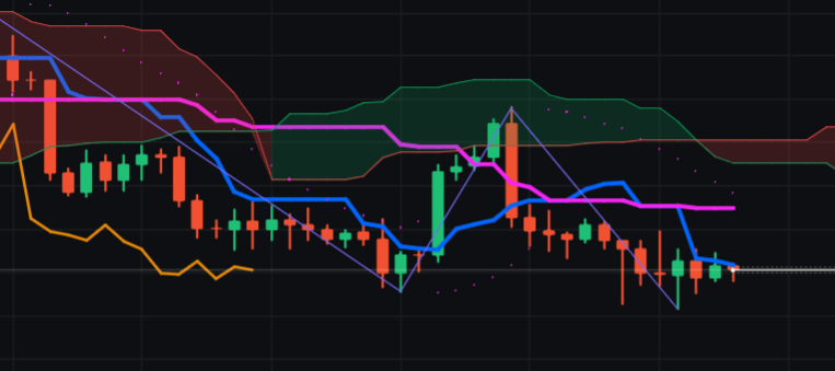 Trên khung 4h, BTCUSD nằm ngay dưới đám mây. Chikou span nằm dưới đám mây