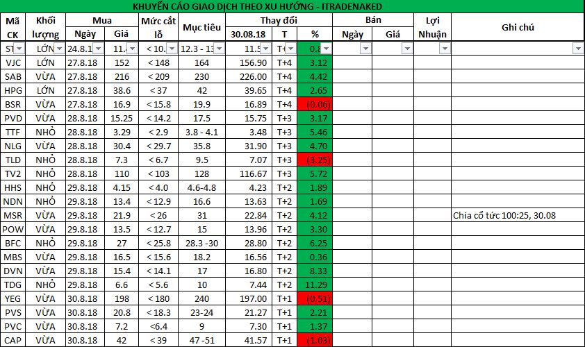 Cập nhập danh sách khuyến cáo ngày 30/08